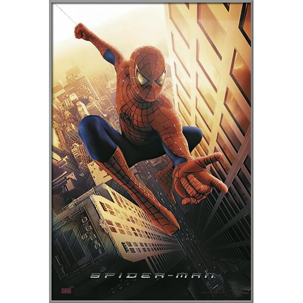 Spider Man Framed Movie Poster Spiderman Swinging Size 27 X 40 Silver Aluminum Frame Walmart Com